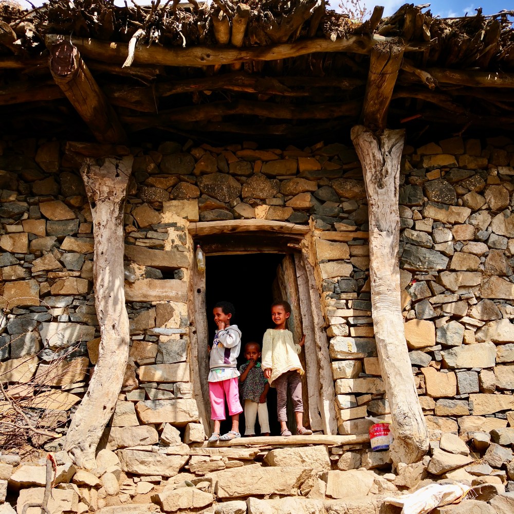 Hoch oben auf einem Felskamm liegt ein kleines Dorf wie aus einer anderen Zeit. Es überragt eine weite Ebene nach Süden, in der irgendwo dort unten die einst bitter umkämpfte Grenze zu Äthiopien liegen muss. Bellende Hunde und näher kommendes Geschrei unzähliger Kinder lässt keinen Zweifel zu: Man weiß schon, dass wir kommen, und es herrscht eine gewisse Aufregung deswegen.